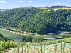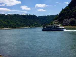 Nach dem Frühstück vor dem Womo, bei ca. 20 Grad, drehen wir eine Runde mit Tony und Mara und fahren anschliessend mit den Rädern steil bergab, nach St. Goarshausen. 14 % Gefälle! Dort kaufen wir ein paar Lebensmittel ein und machen eine Rast in einem Restaurant. Wir unterhalten uns nett mit unseren Tischnachbarn und fahren anschließend mit den E -bikes, den wirklich steilen Weg zurück zum Womo. Wir schaffen es problemlos wieder zurück, trotz der starken Steigung, daran haben wir nicht wirklich geglaubt.