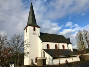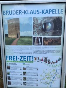 Zunächst fahren wir nach Mechernich. Hier laufen wir bei 40 Grad, mit den Hunden zur „Bruder- Klaus“ Kapelle.