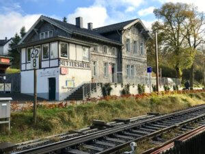 Heute Morgen sind wir früh aufgestanden, ich habe beim Bäcker frische Brötchen geholt. Nach dem Frühstück fahren wir mit der Bahn nach Urft. Ca. 4 min. Dauert die Fahrt.