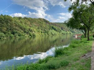 Wir spazieren an der Mosel entlang, pausieren in einer Strausswirtschaft.