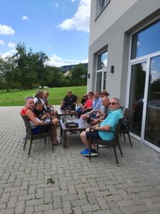 Abends kommen Petra und Rüdiger. Wir sitzen bis 23 Uhr vor unserem Hodgi, zusammen an der Mosel.