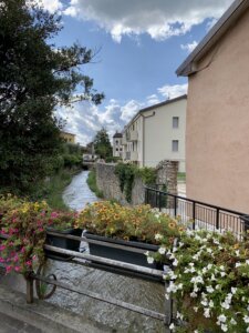 Hier ist es zum Glück nicht so voll. Wir können mit Ruhe durch die kleine schöne Stadt laufen, shoppen, einkehren später wieder zurück.