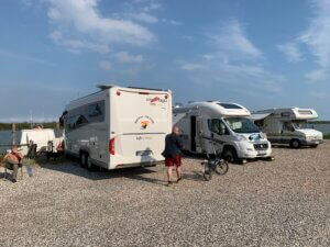 Die Fahrt hierher war ein wenig abenteuerlich, schmale Wege, Straßen welche wir nicht passieren konnten, Fahrt über den Damm und zum Schluss auch noch eine Pontonbrücke, welche nur bis 5 t zugelassen ist.