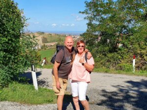 Bei einem fantastischen Ausblick bis an die Adria haben wir gut gegessen und zum Schluss bekam Ich 2 Espresso Tassen geschenkt.