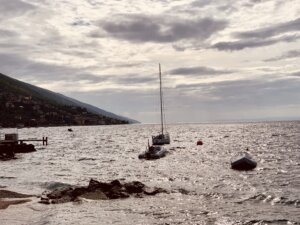 Bei bestem/ kühlen Wetter erwachten wir heute Morgen. Ein klarer, blauer, sonniger Tag ist gut, um sich von der am Horizont glitzernden Adria zu verabschieden.