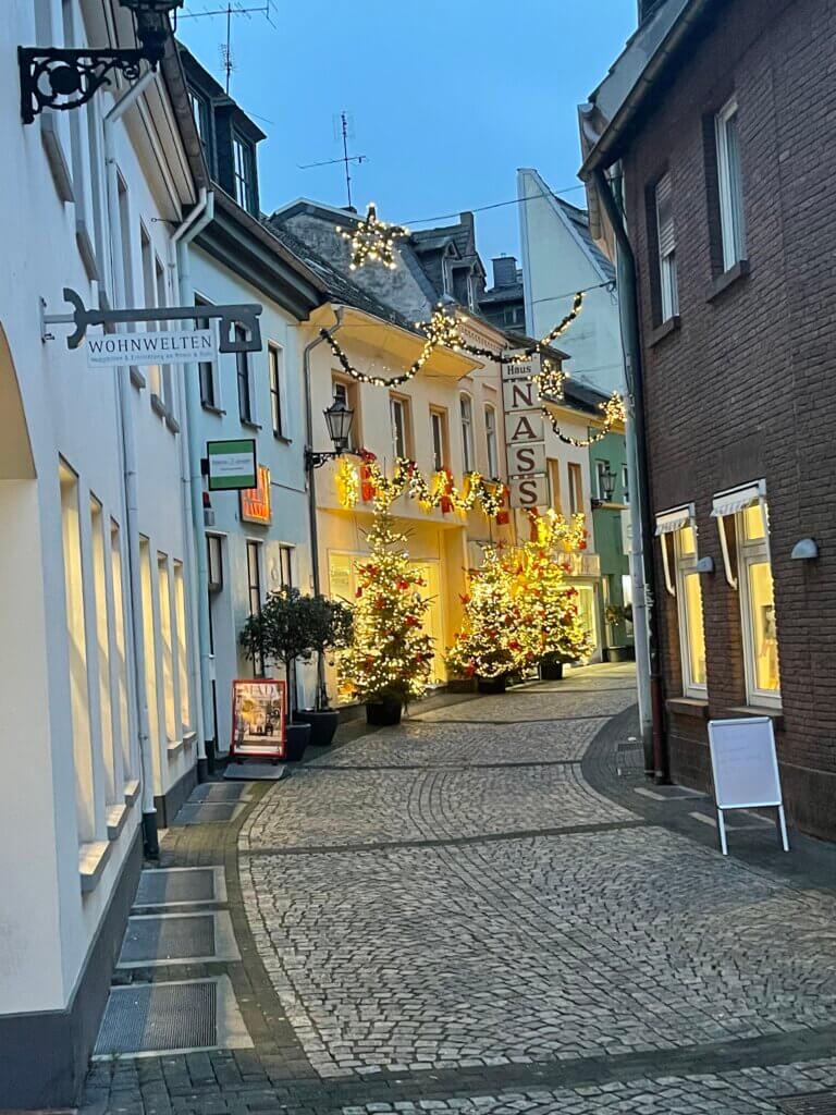 Wir sind zum 1. Mal in Moers, es ist eine überraschend schöne alte Innenstadt, mit vielen Geschäften, schön weihnachtlich geschmückt. Ein schöner, kleiner Weihnachtsmarkt. Wir bummeln durch die Stadt, kehren im Brauhaus ein und genießen die schöne Atmosphäre auf dem Weihnachtsmarkt.