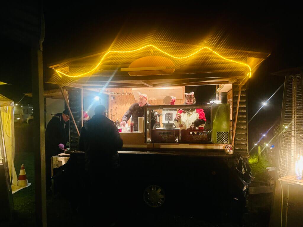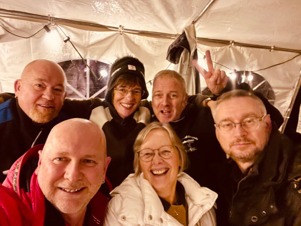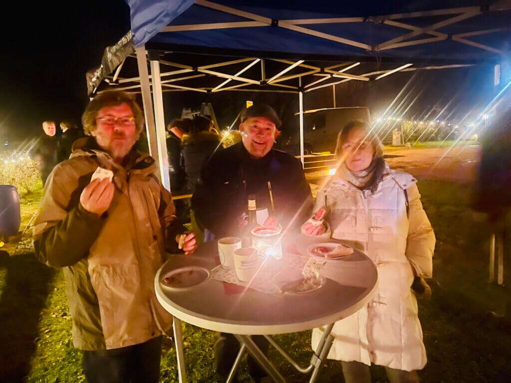 Es wird ein schöner Abend an der Glühweinbude und im Zelt, welches uns dank der Gaspilze vor der feuchten Kälte schützt.