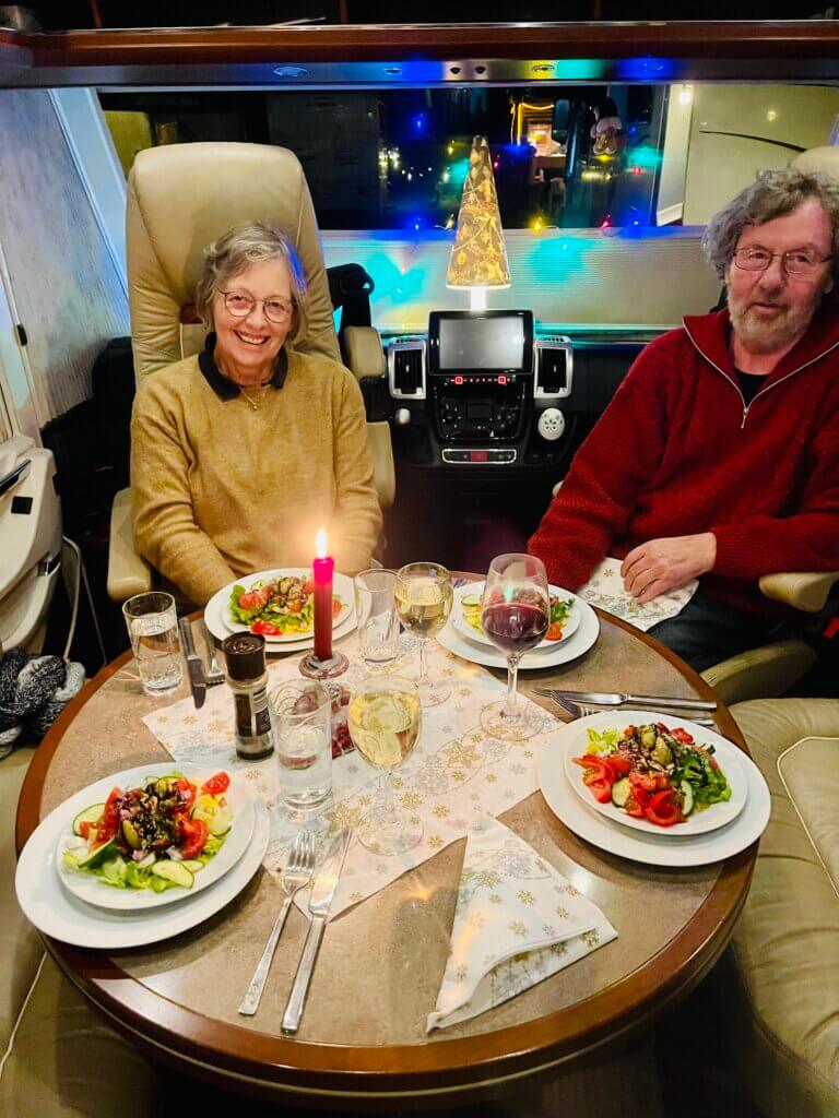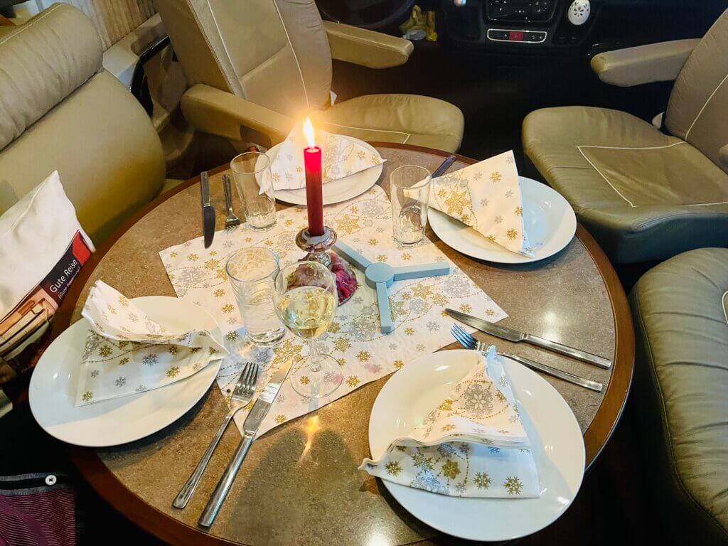 Wir stehen mit einigen Bekannten und unseren Freunden in Uedem. Die herzlichen Stellplatzbesitzer, Manuela & Peter haben ein Adventstreffen geplant und den Stellplatz sehr schön dekoriert.