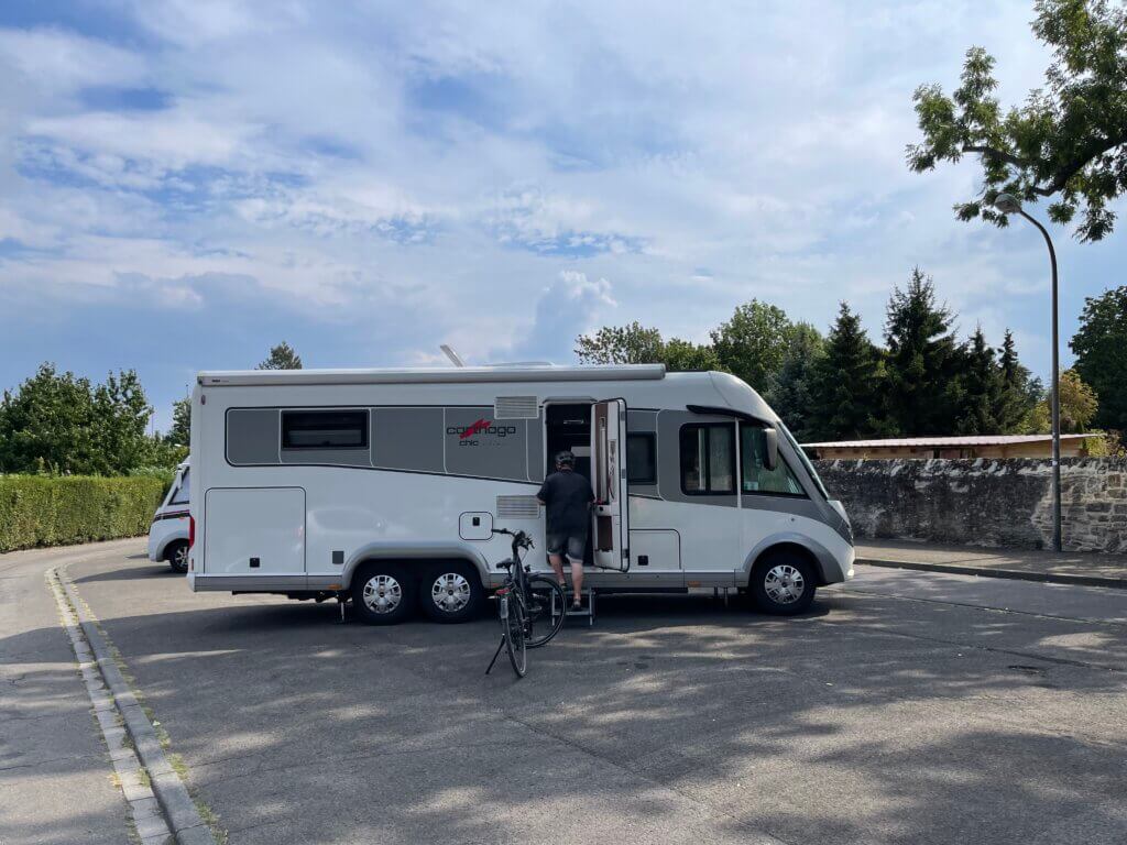 Hier stehen wir frei , nur 500 m bis zum Schloss und in die Stadt.