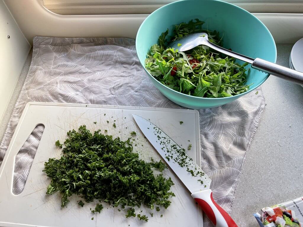 Heute gab es nur Salat, frisch vom Markt, noch ein letztes Stück Börek und das war es auch….. lecker war es.