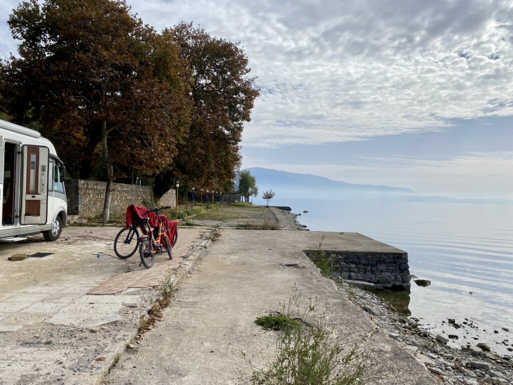 Der Ohridsee liegt 700 m hoch, von daher wird es nach Sonnenuntergang schnell frisch. In der letzten Nacht war es 4 Grad, somit ist heute Morgen die Heizung mal kurz angesprungen.
