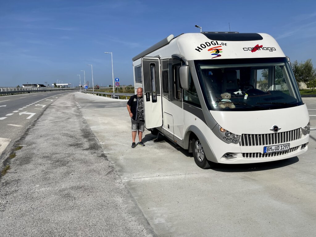 Den Platz von gestern haben wir verlassen. Wir konnten heute auf dem Weg an der Autobahn Grauwasser entsorgen. Es war ein wenig befremdlich aber nach Rücksprache ein offizieller Dumpplatz🤷♂️.