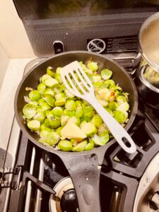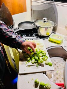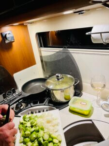 Es hat uns dann allerdings in heimische Gefilde gezogen. Die Carthagoküche musste herhalten…..Tagliatelle mit Rosenkohl und einer Parmesan/ Zwiebel Soße .