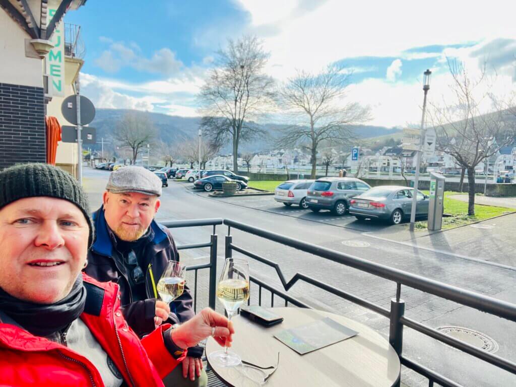 So sitzen wir nach 14 h in dem kleinen Städtchen in einer Vinothek und treffen uns mit Bekannten.