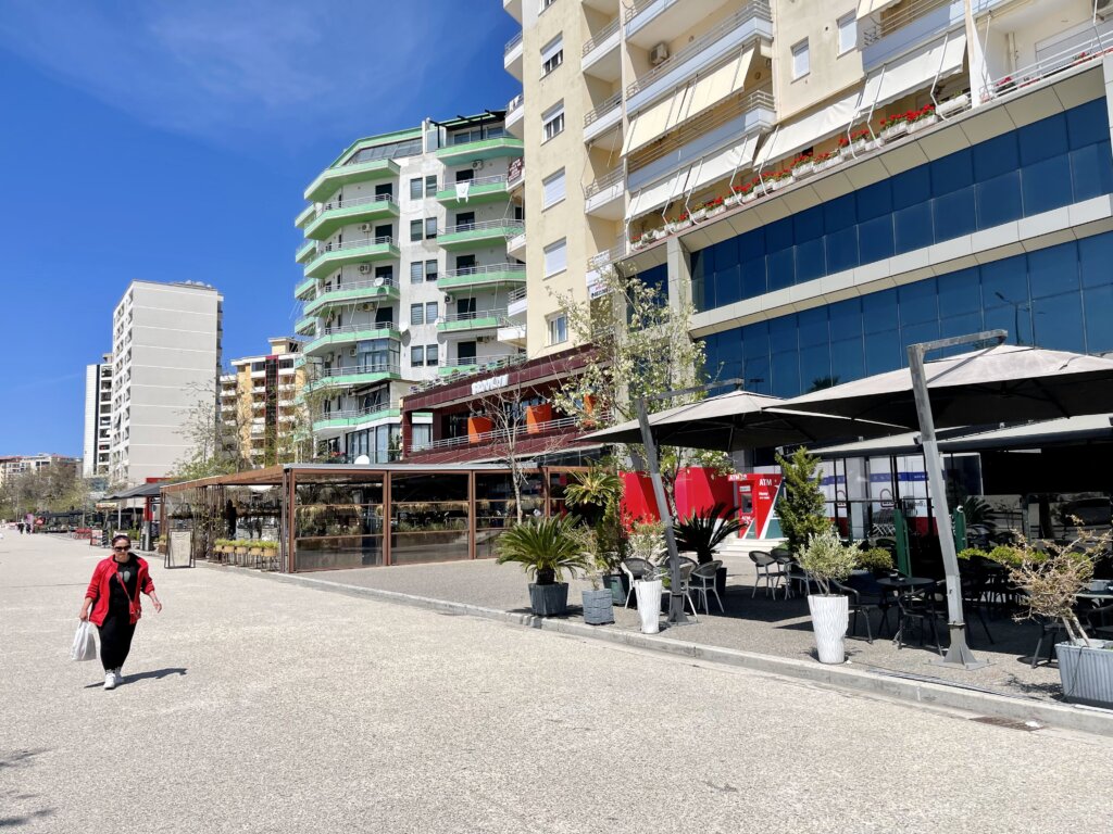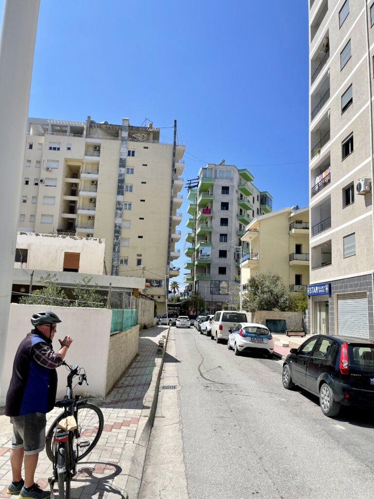 Die Radfahrt entlang der Hauptstraße war ein wenig abenteuerlich aber ok. Flora ist eine schöne, pulsierende Stadt in Albanien mit schöner Strandpromenade und vielen Geschäften.