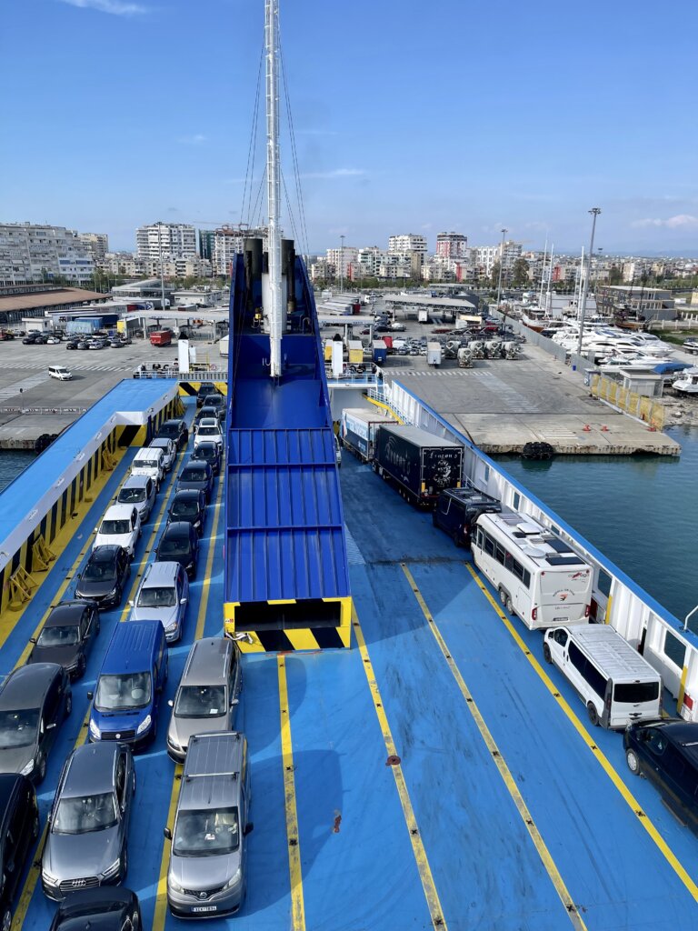 Heute Morgen sind wir um 10 h Richtung Durres gefahren, direkt zum Fährhafen….. das war auch gut so!