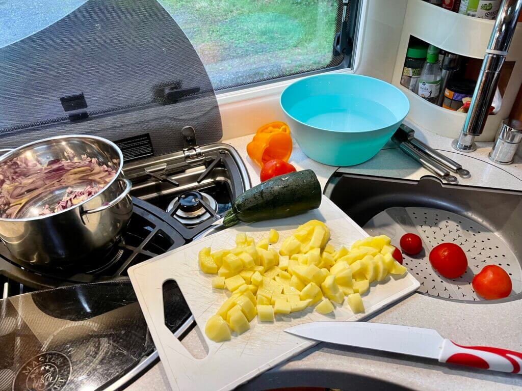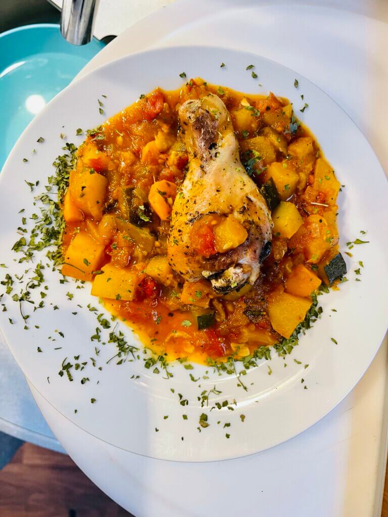 Lecker war das Ratatouille mit mediterranem Gockel aus dem Römertopf….