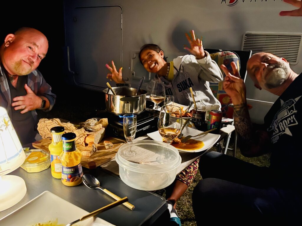 Zurück am Hodgi treffen wir Sari und Jörg, welche wir vor ca. 3 Wochen in Reil kennen lernten wieder. Es folgt ein schöner Abend. Jörg zaubert noch Gambas mit Knofi, Olivenöl und Brot.