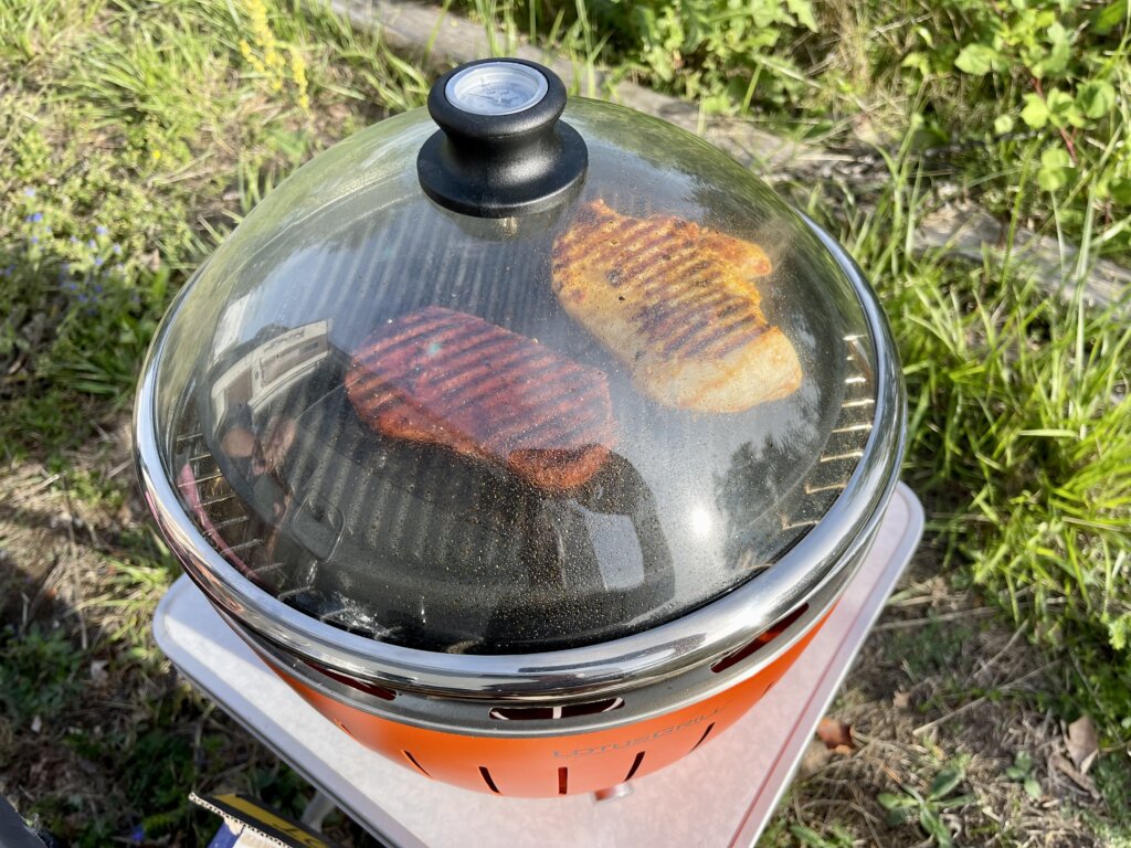 Heute Abend haben wir den Grill ausgepackt und bei windigem aber warmen Wetter gegrillt….