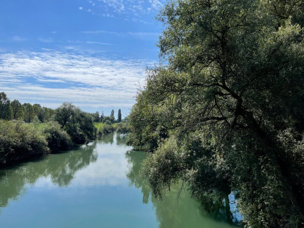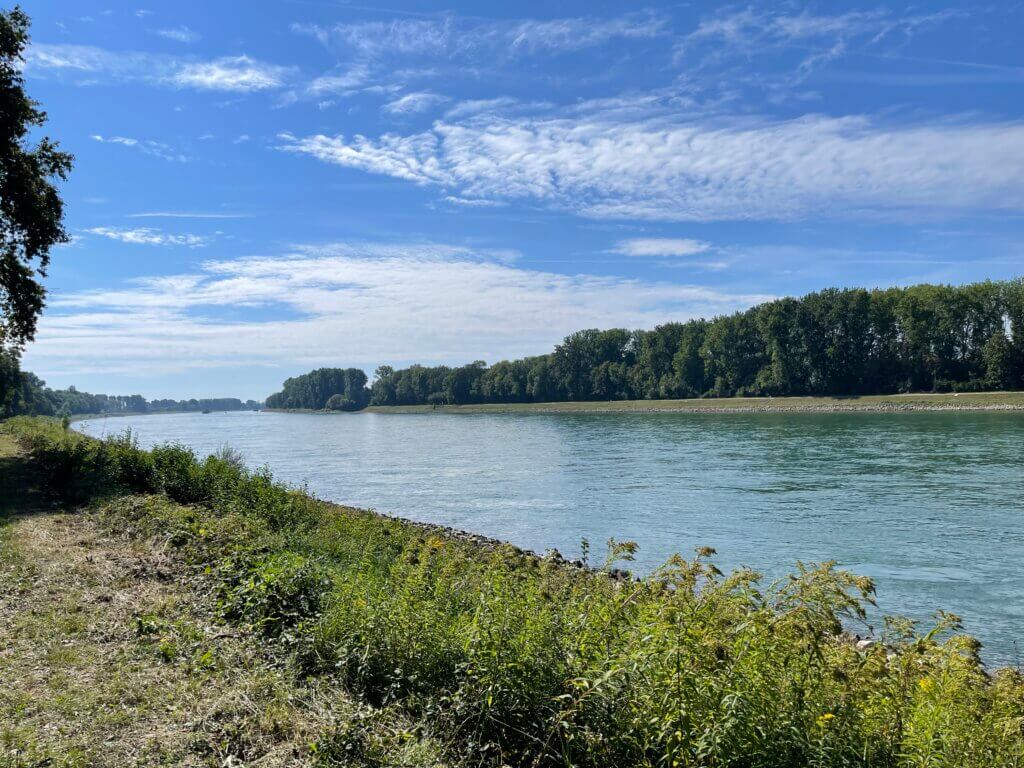 Nach dem Frühstück nehmen wir uns eine kleine Auszeit und fahren mit dem Rad an den Rhein…… eine himmlische Ruhe, welche wir als Festivalopas geniessen.