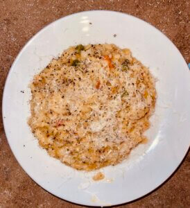 Heute verlassen wir das Womo nicht mehr. Es gibt ein Steinpilzrisotto mit Salat,