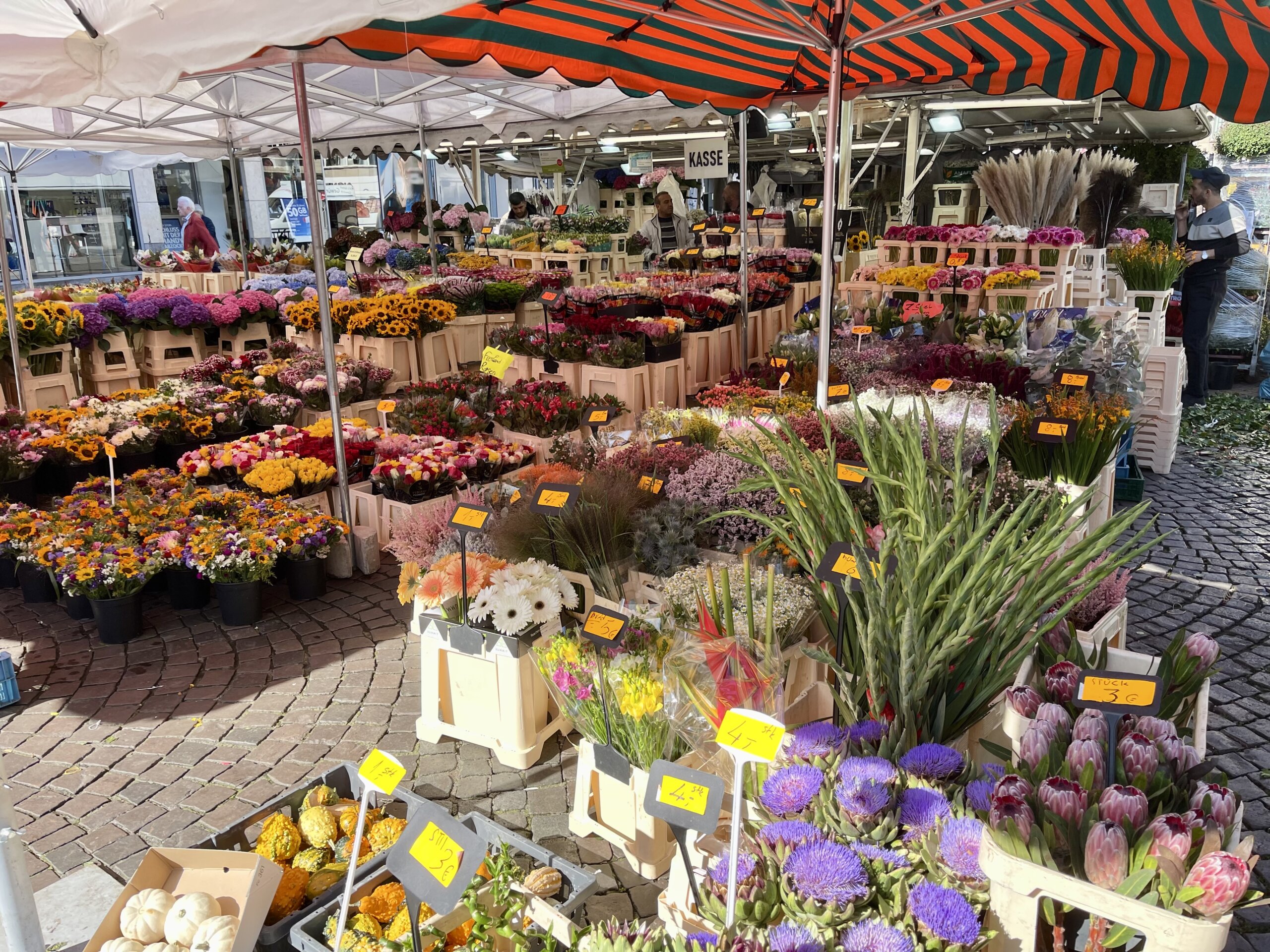 Markt in einer größeren Stadt ist immer toll, deshalb genießen wir die Atmosphäre, auch wenn wir nichts brauchen.