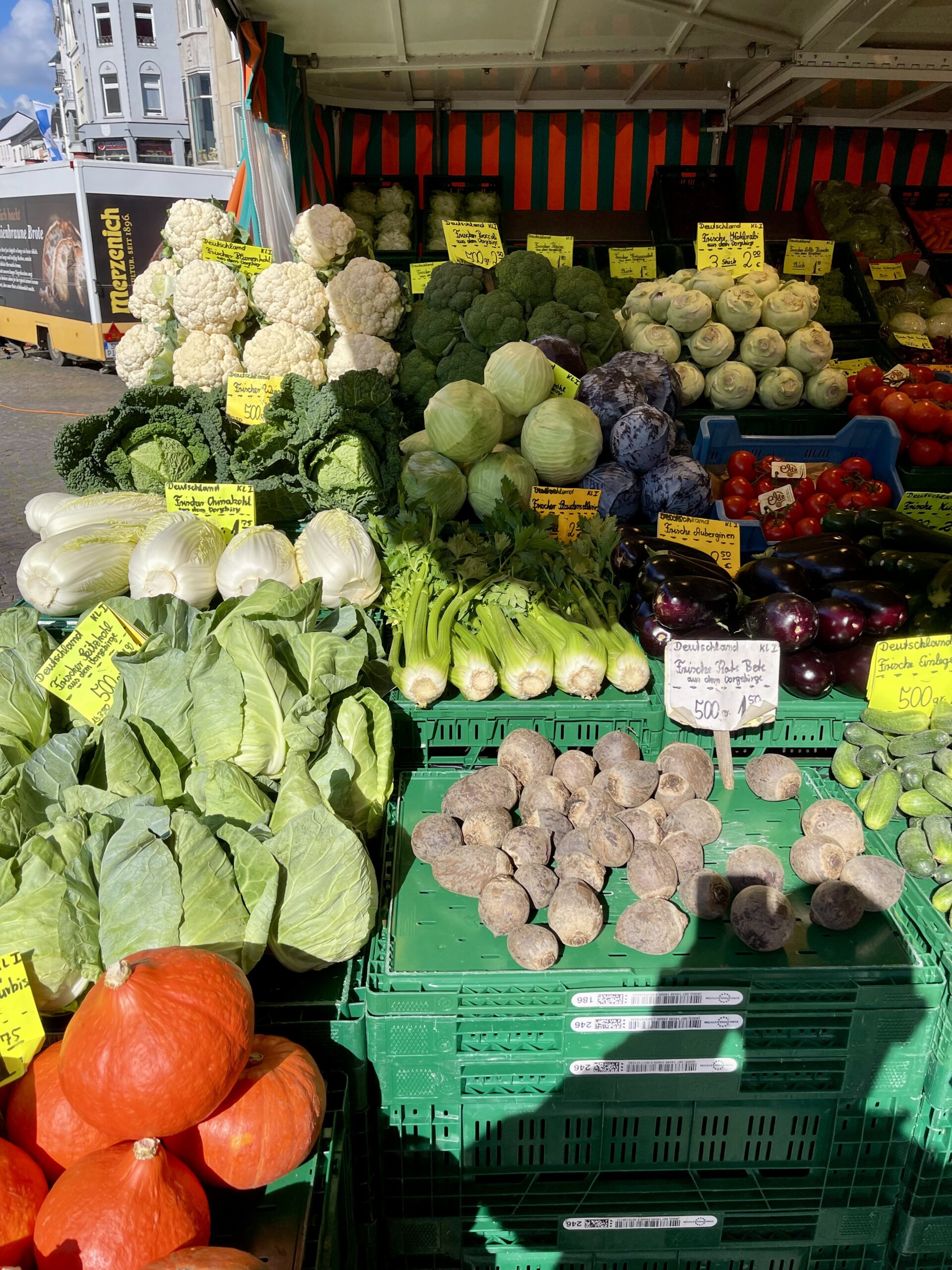 Markt in einer größeren Stadt ist immer toll, deshalb genießen wir die Atmosphäre, auch wenn wir nichts brauchen.