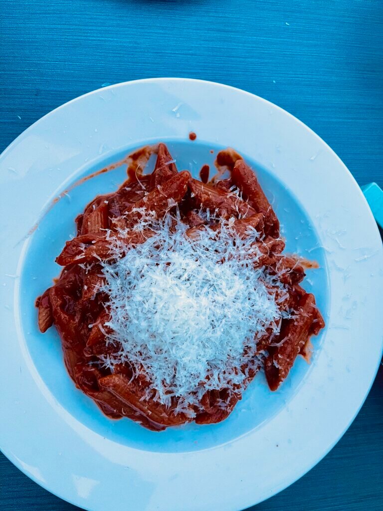 Danach ging es heimwärts und es gab Penne Arrabiata mit Salat, sehr lecker.