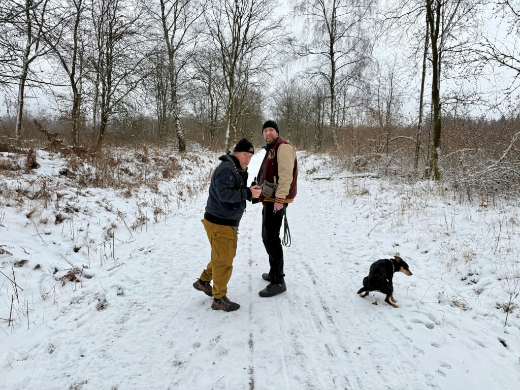 Der heutige Morgen bot ein weißes Erwachen, so nutzten wir die Gelegenheit für einen längeren Schneespaziergang mit den Hunden. Leider war der Spaß nicht von allzulanger Dauer, denn schnell kam die Warmfront und der Schneefall ging in stärkeren Regen über.