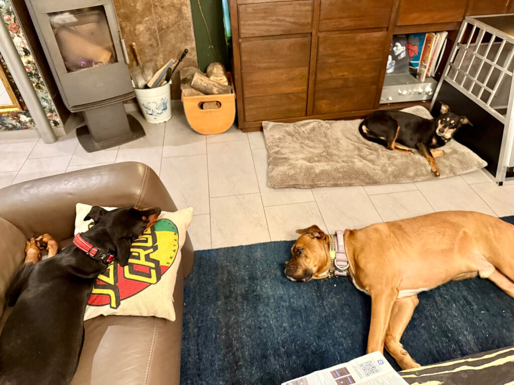 Den Hunden hat es eh gereicht, wir verbummeln den Tag, relaxen und kochen etwas zu Abend, was man halt so macht…..
