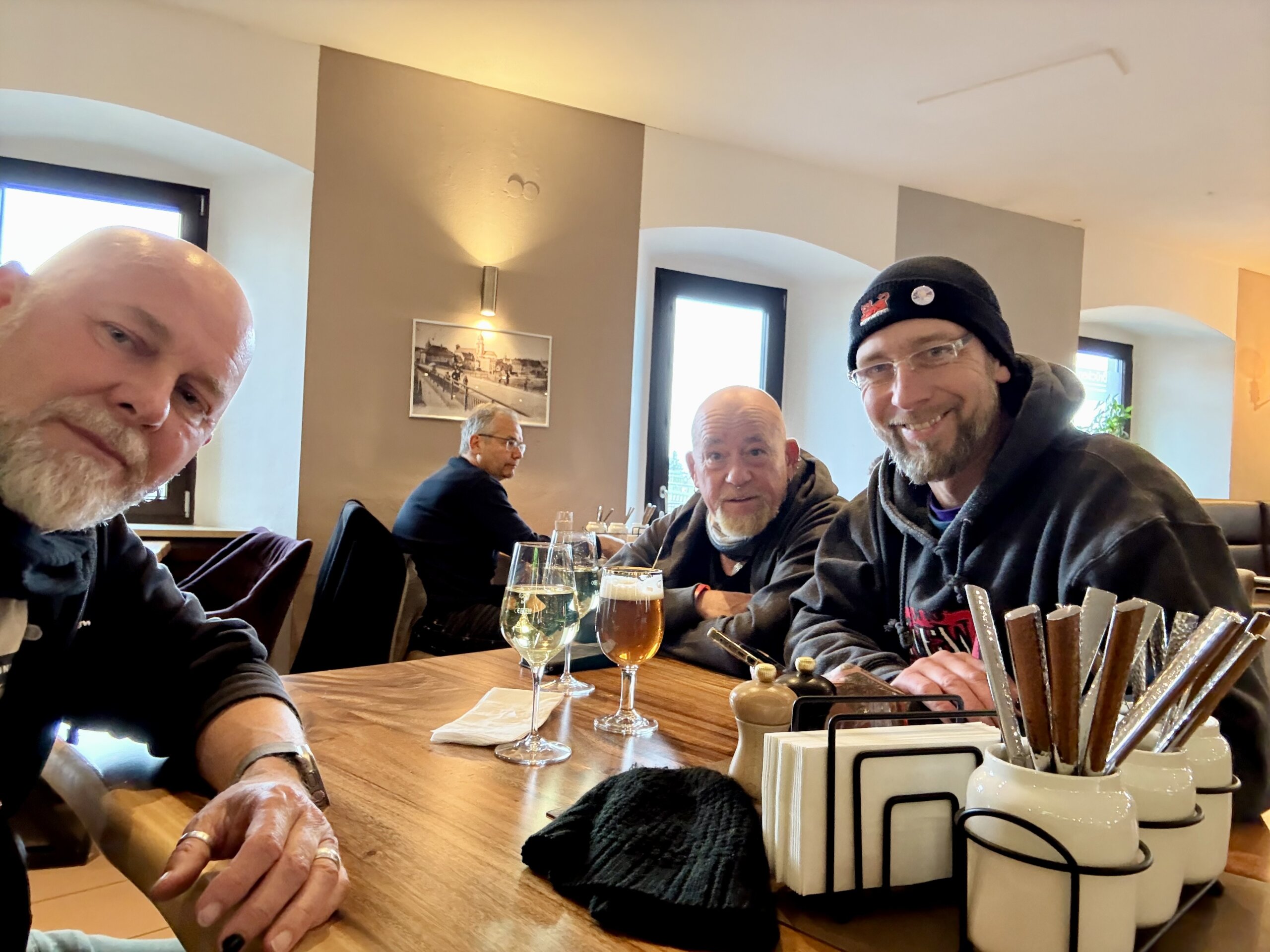 Dort gab es ein Aufwärmweinchen, denn wir sind ganz schön durchgefroren.