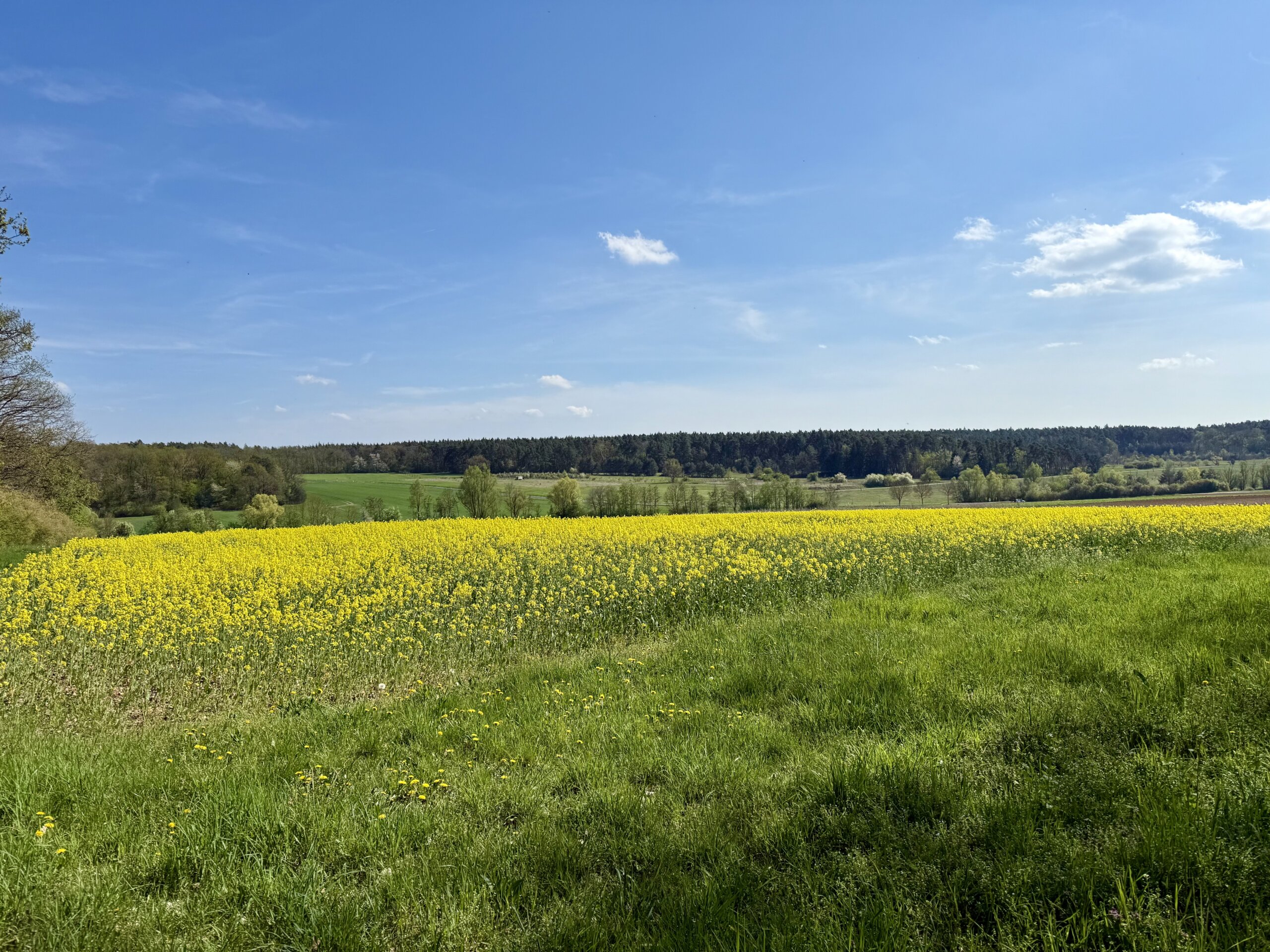 Arbeit erledigt heißt Freizeit! Mit dem Rad geht es ins 14 km entfernte Volkach, hin durch die schönen Felder und blühende Landschaft.