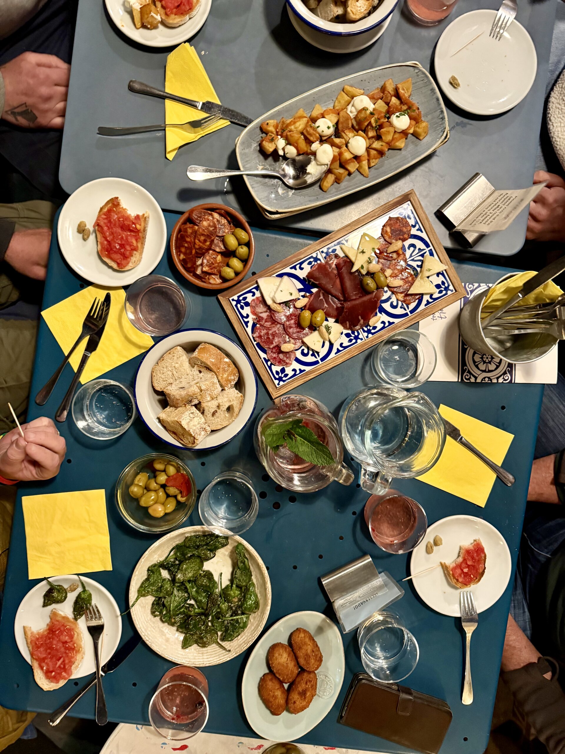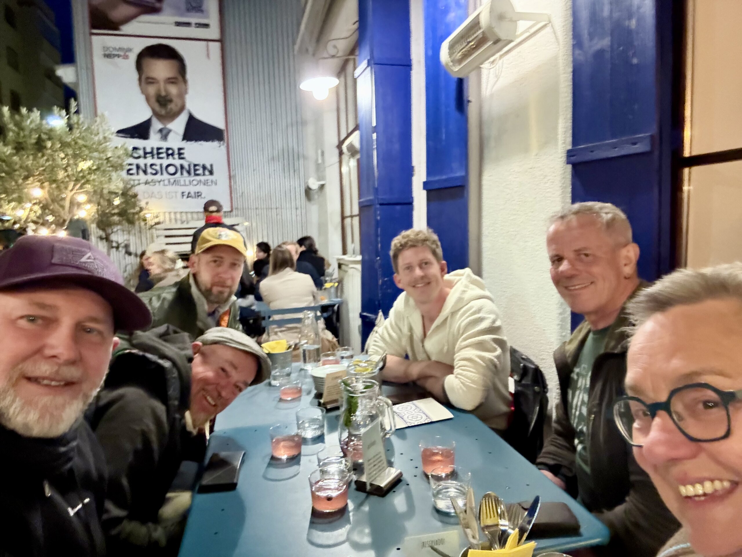 Wiedersehensfreude, danach gehen wir ins vorreservierte Restaurant – einer Tapas Bar und Speisen vorzüglich.