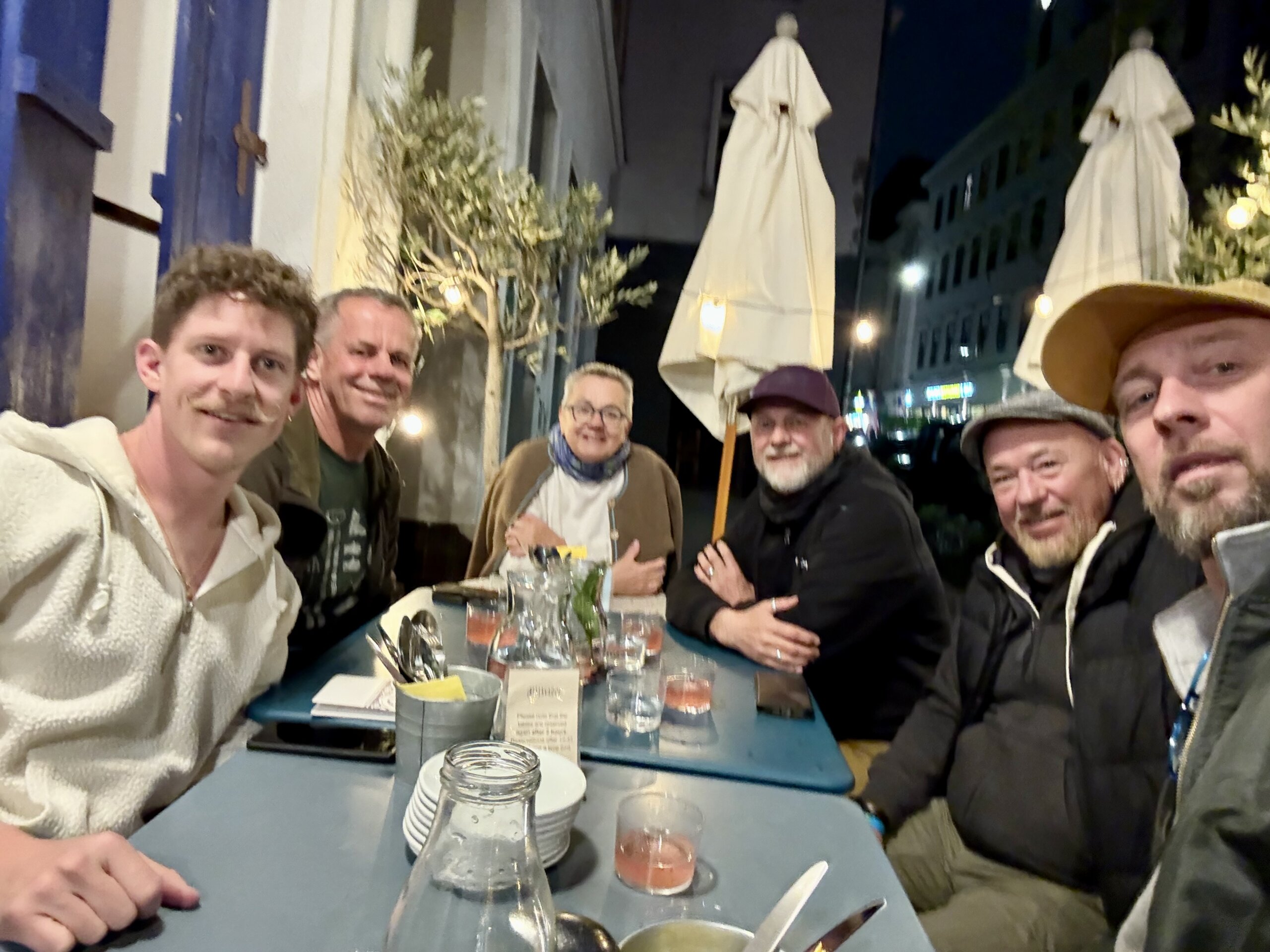 Leider haben wir nur Plätze im Außenbereich bekommen, doch das Wetter ist gut und es ist nicht kalt. Als ein paar Regentropfen fallen, entscheiden wir uns dazu zu Tobi und Chris zu gehen. Dort lassen wir den Abend bei einem Glas Wein ausklingen. Es war ein sehr schöner Abend.