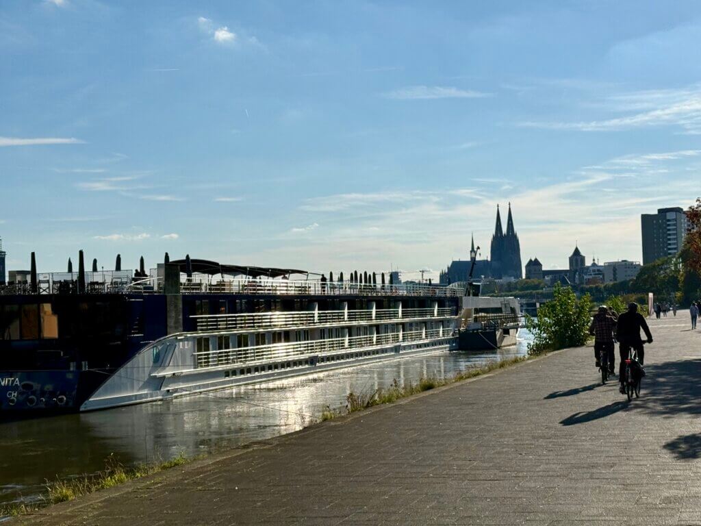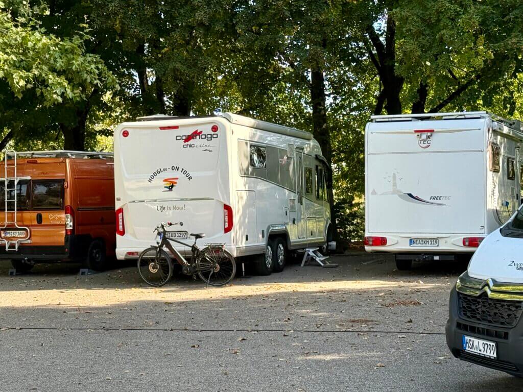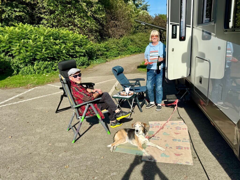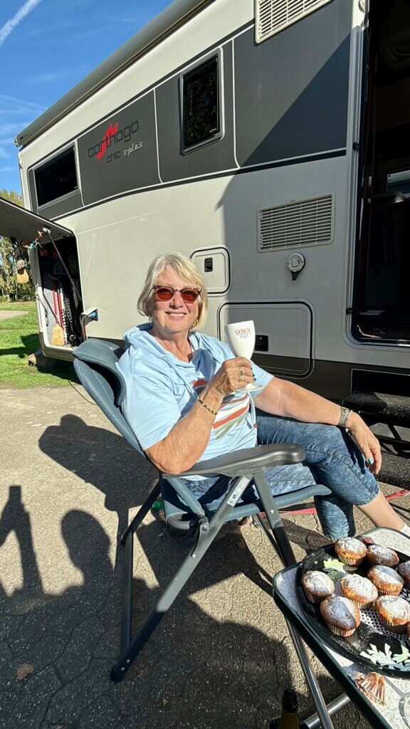 Nach der Arbeit geht es in die Domstadt, dort haben wir einen Stellplatz im Reisemobilhafen Riehl reserviert. Hier treffen wir Anne und Wolfgang, jedoch nicht zufällig, denn wir sind verabredet. Zunächst sitzen wir mit Anne vor dem Womo, sie hat sehr leckere Apfelmuffins zubereitet.
