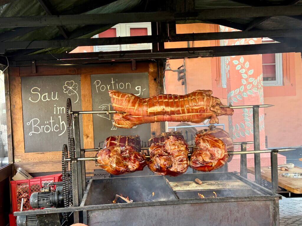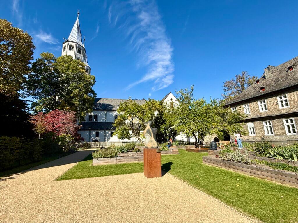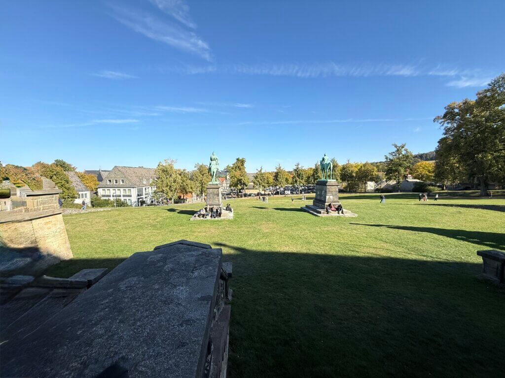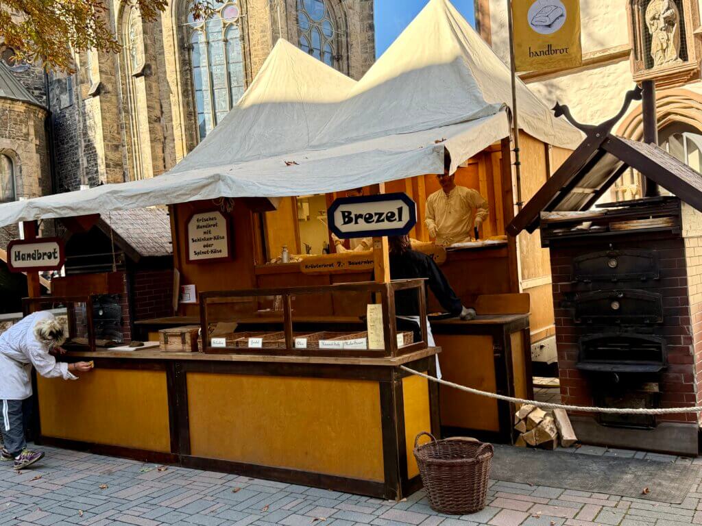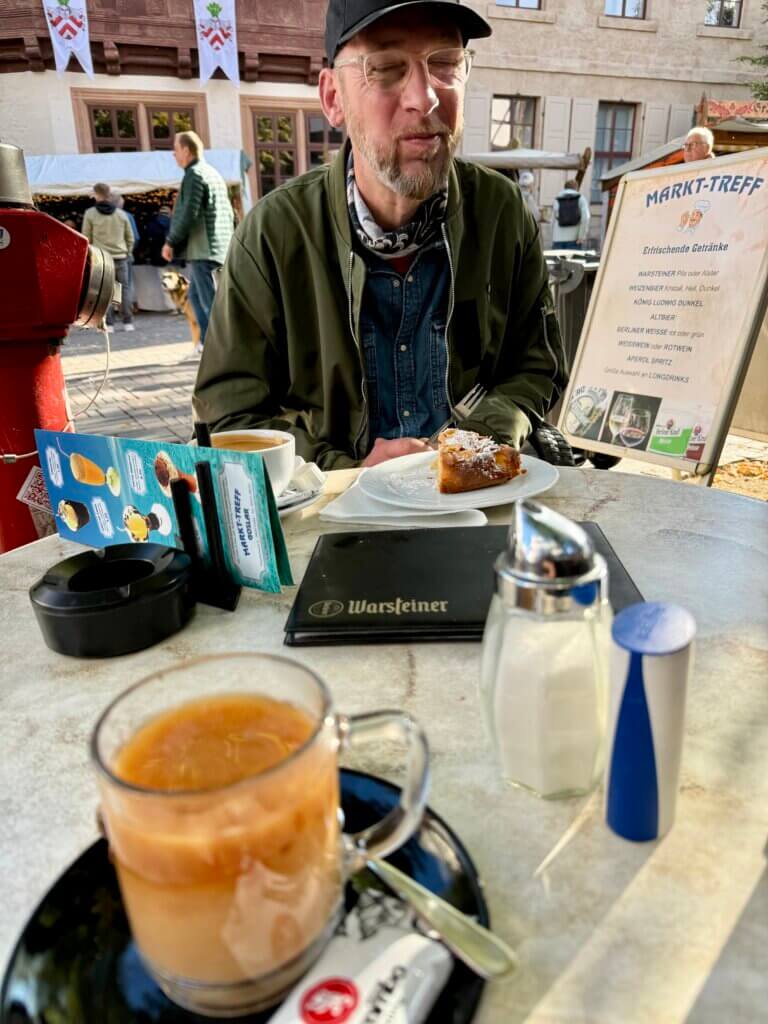 Gegen Mittag fahren wir wieder in die schöne Stadt. Es ist schon richtig voll geworden auf unserem freien Stellplatz, welcher wohl auch Ausweichparkplatz ist. Selbst Reisebusse treffen ein. Auch die Stadt ist schon voll, doch der Markt öffnet offiziell erst 16 Uhr. Wir können uns noch alles in Ruhe anschauen, Kaiserpfalz, romanischer Garten und die schönen althistorischen Häuser- Rathaus, Kirche, Kaiserplatz etc.