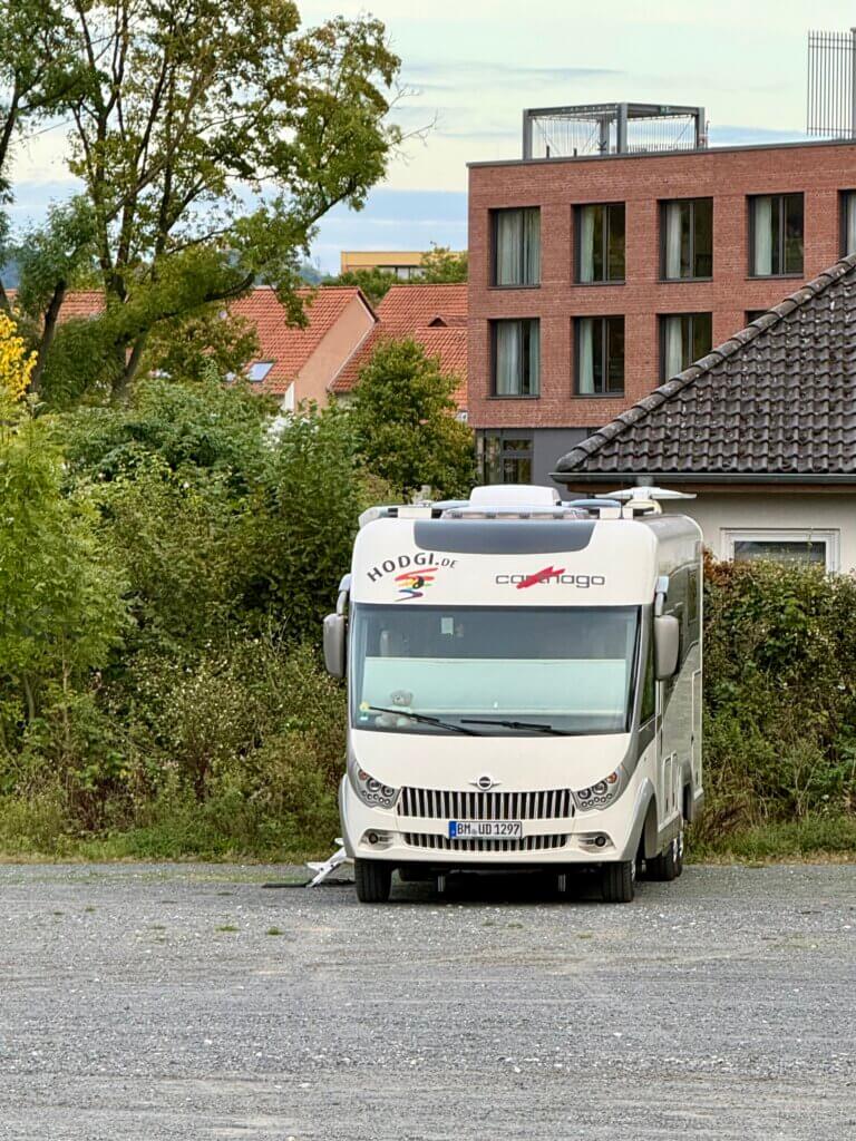 Eine Stunde später stehen wir in Einbeck- frei – auf dem Parkplatz vor der Skatehalle,
