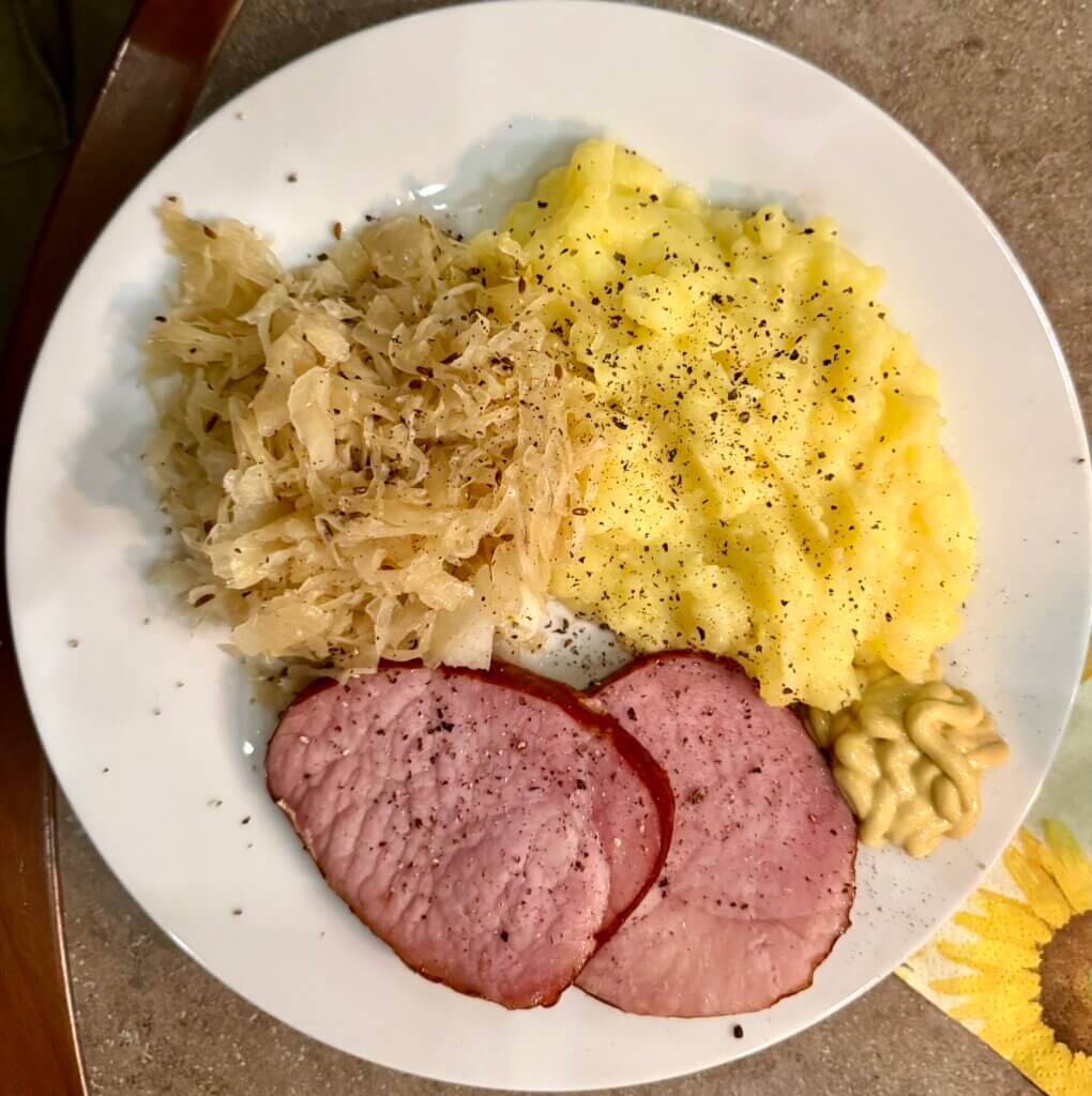 Zurück am Hodgi wird die Carthagoküche in Betrieb genommen. Herbst bedeutet gutes, bürgerliches Abendessen- frisch bereiteter Kartoffelstampf, Sauerkraut und Kassler aus dem Römertopf.
