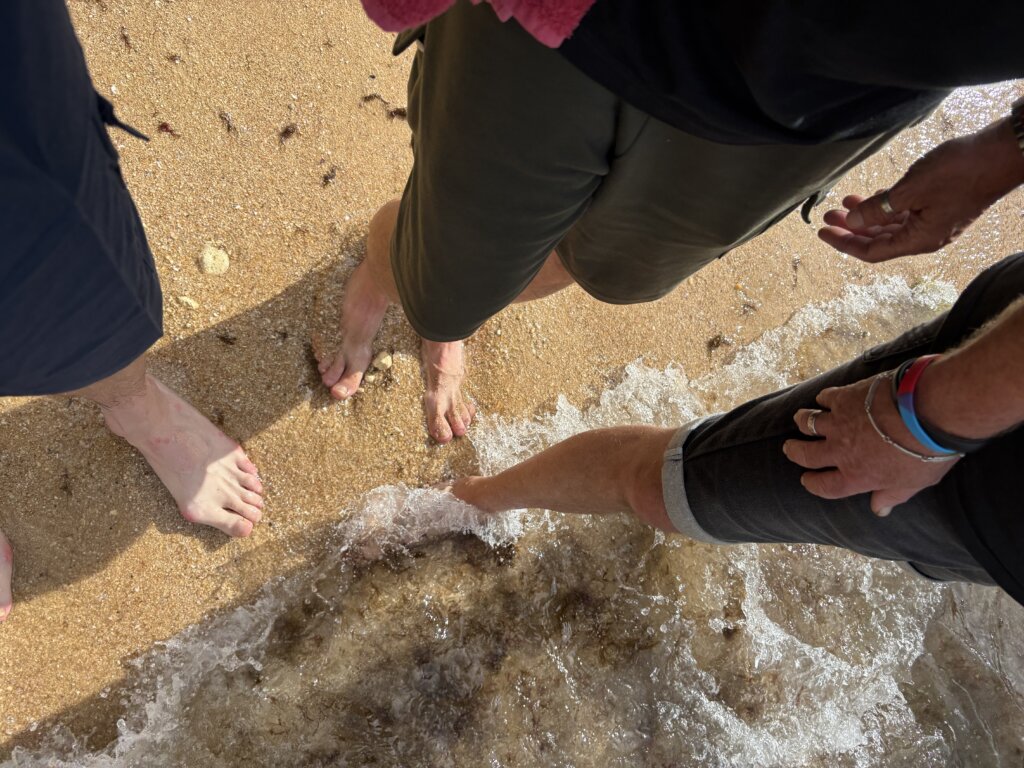 Leider war Ebbe und man konnte nicht wirklich schwimmen gehen. Für ein kurzes Sonnenbad und etwas planschen ist der Morgen gut.
