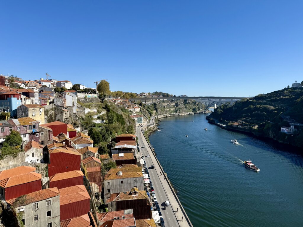 Nach dem Frühstück fahren wir mit den Rädern über eine der bedeutendsten Brücken der Stadt, die Dom Luis I Brücke über den Douro. Der Weg bis zur Brücke ist steil und da ist es gut das wir die e-bikes haben. Der Ausblick auf das Ribeira Viertel entlohnt uns für den Weg.