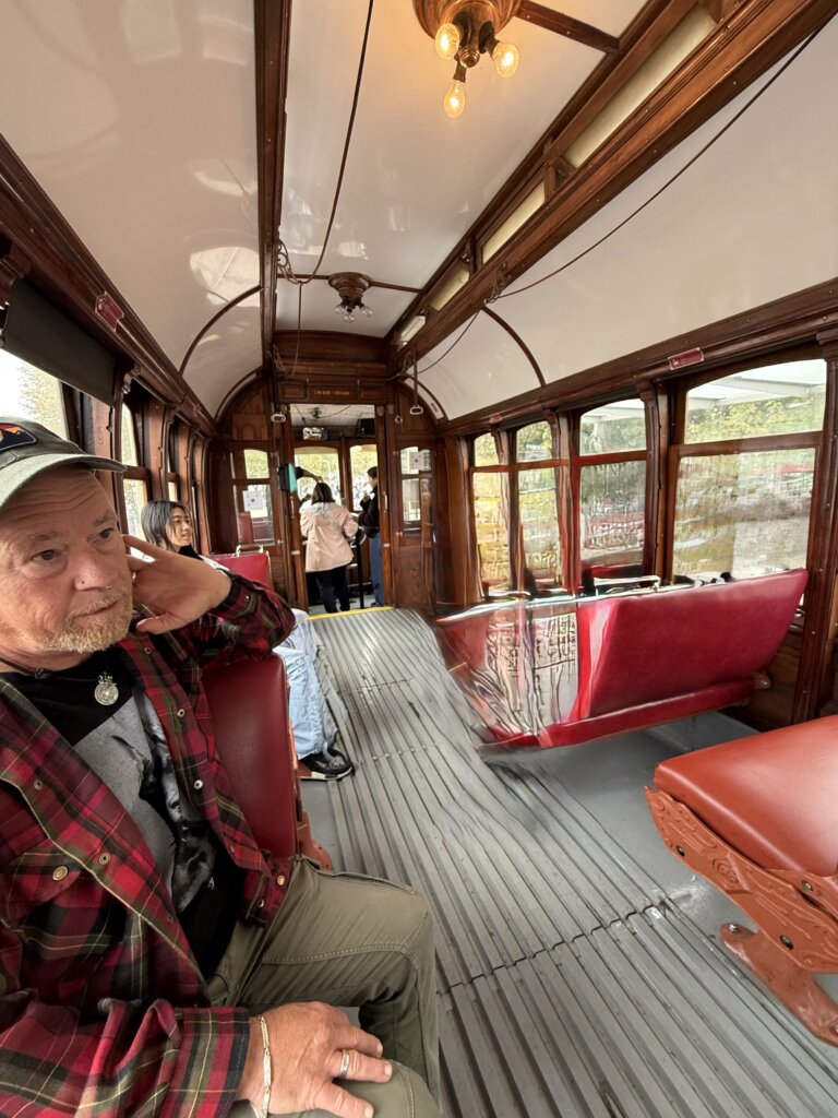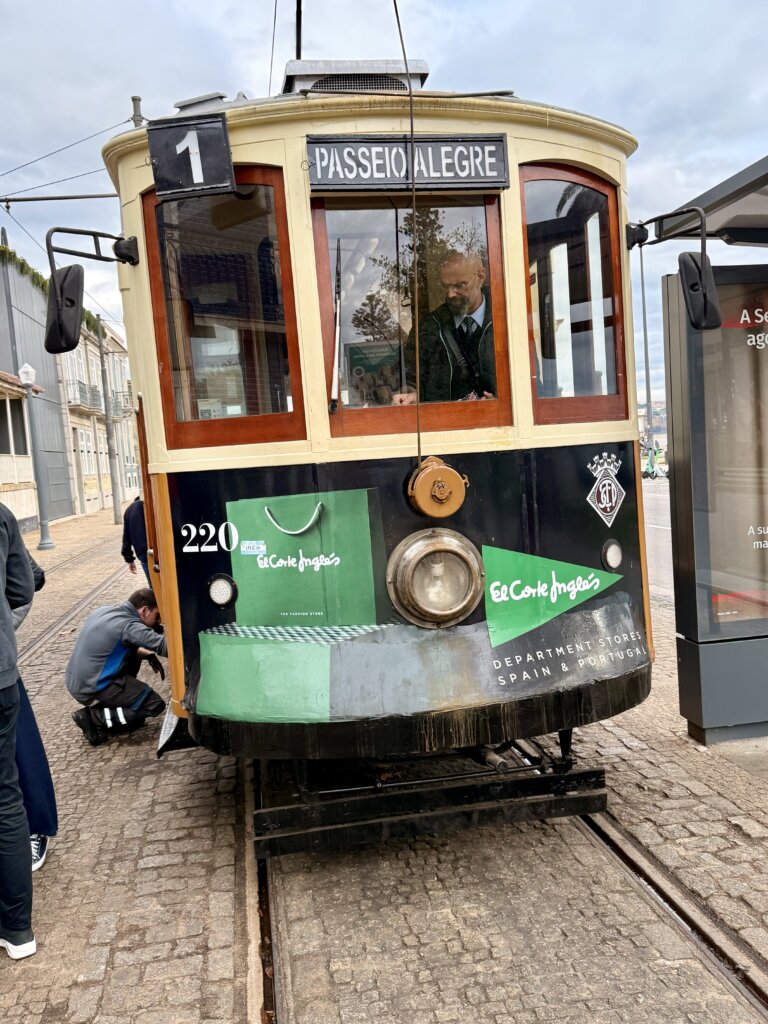 Zunächst fahren wir mit der althistorischen Tram vom Ribeira Viertel bis zur Endstation den Douro entlang.
