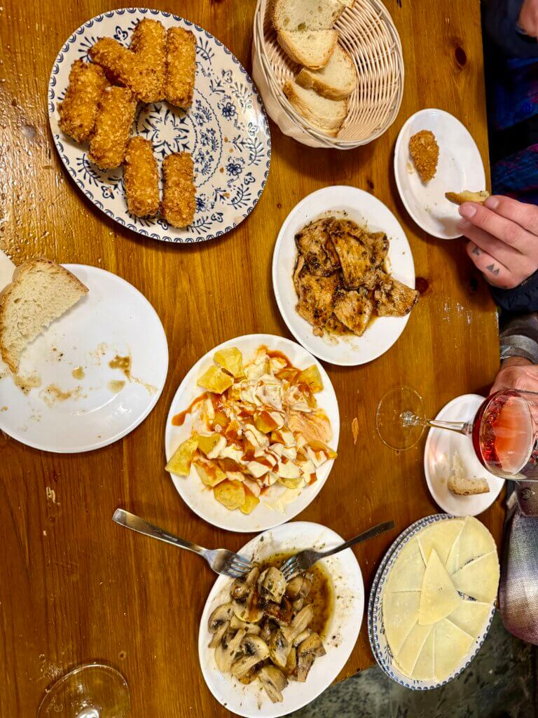 Nachdem wir in einer Tapas Bar lecker gegessen haben, laufen wir noch in 2 andere Bars und beobachten das bunte Treiben.