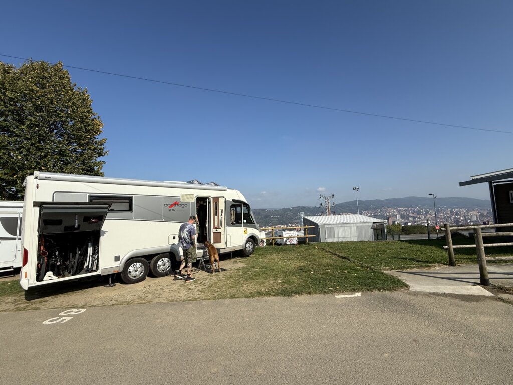 Auch hier haben wir Glück und bekommen einen Platz auf dem hiesigen, wohl sehr beliebten Stellplatz mit toller Sicht auf die uns zu Füßen liegende Stadt- Super!