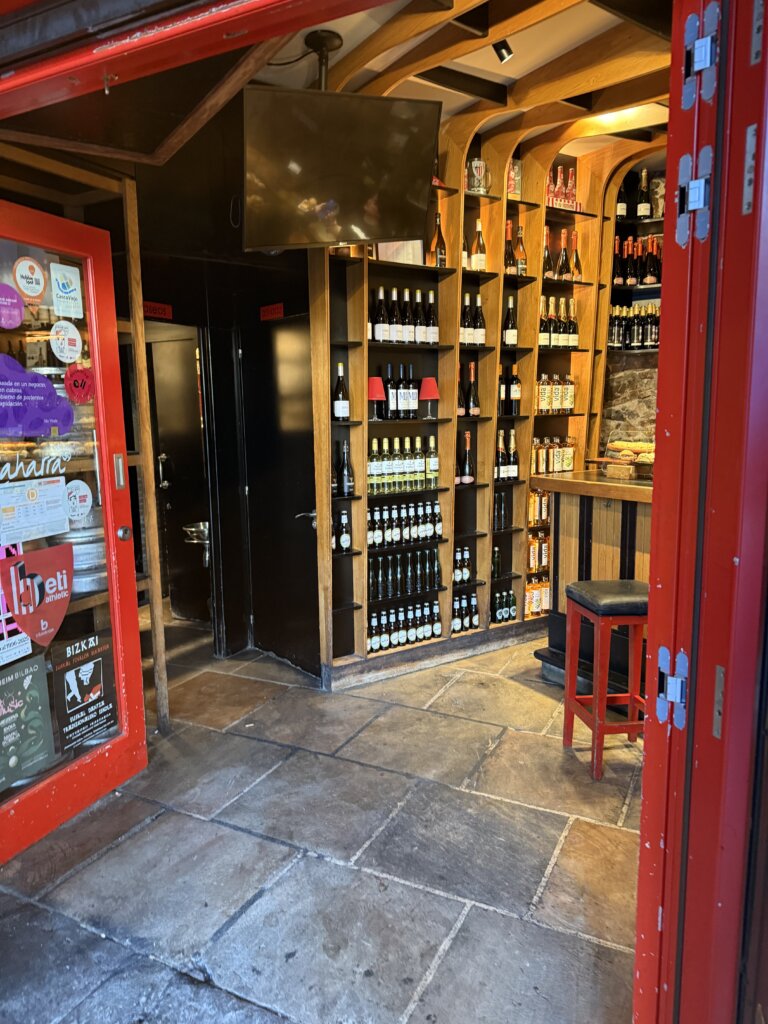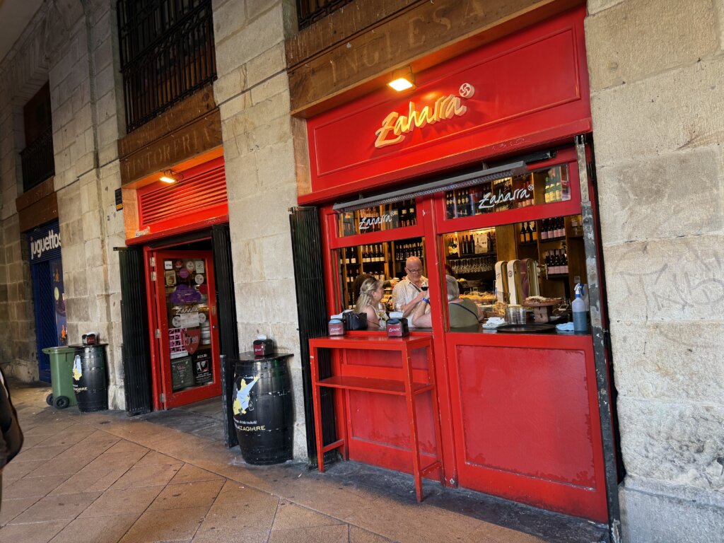 Wir gehen weiter und kehren später nochmal in einer anderen Pincho Bar ein. Auch hier gibt es nochmal 2 Tappas für uns, dazu den guten lokalen Wein und zum krönenden Abschluss noch baskischen Kuchen uns Espresso.