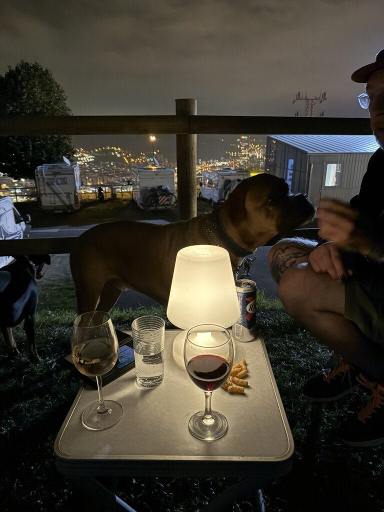 Es ist noch nicht kalt und wieder sitzen wir vor dem Hodgi und schauen noch locker eine Stunde auf das hell erleuchtete Bilbao…….. wirklich schön.