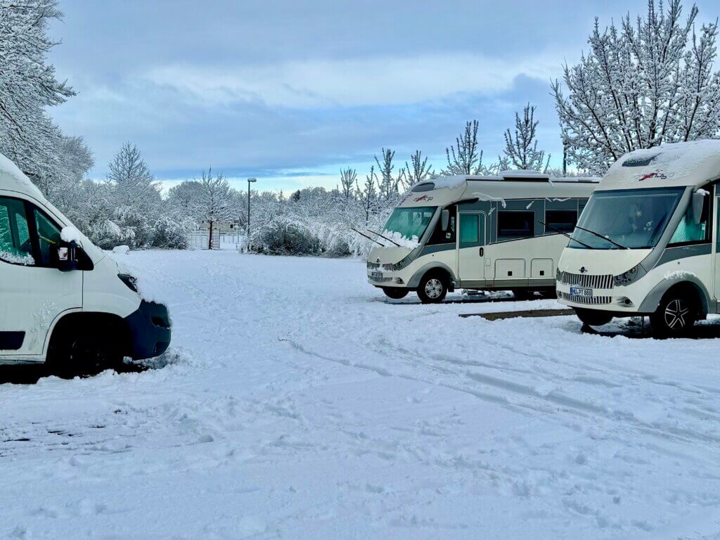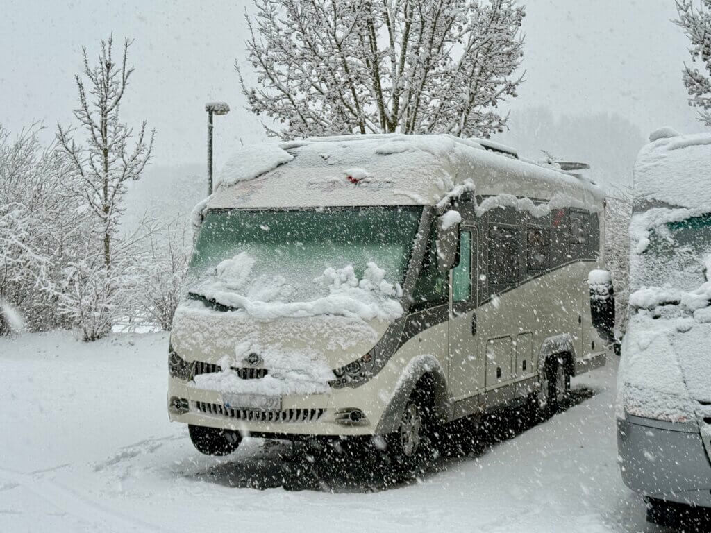 Ja das kann man wahrhaftig sagen…. heute Morgen fing es kräftig an zu schneien, für längere Zeit. Ca. 10-15 cm Schnee vielen in den Morgenstunden, so waren die Würfel gefallen. Wir werden einfach stehen bleiben, obwohl wir eigentlich weiter fahren wollten. An Abfahren ist nicht zu denken.