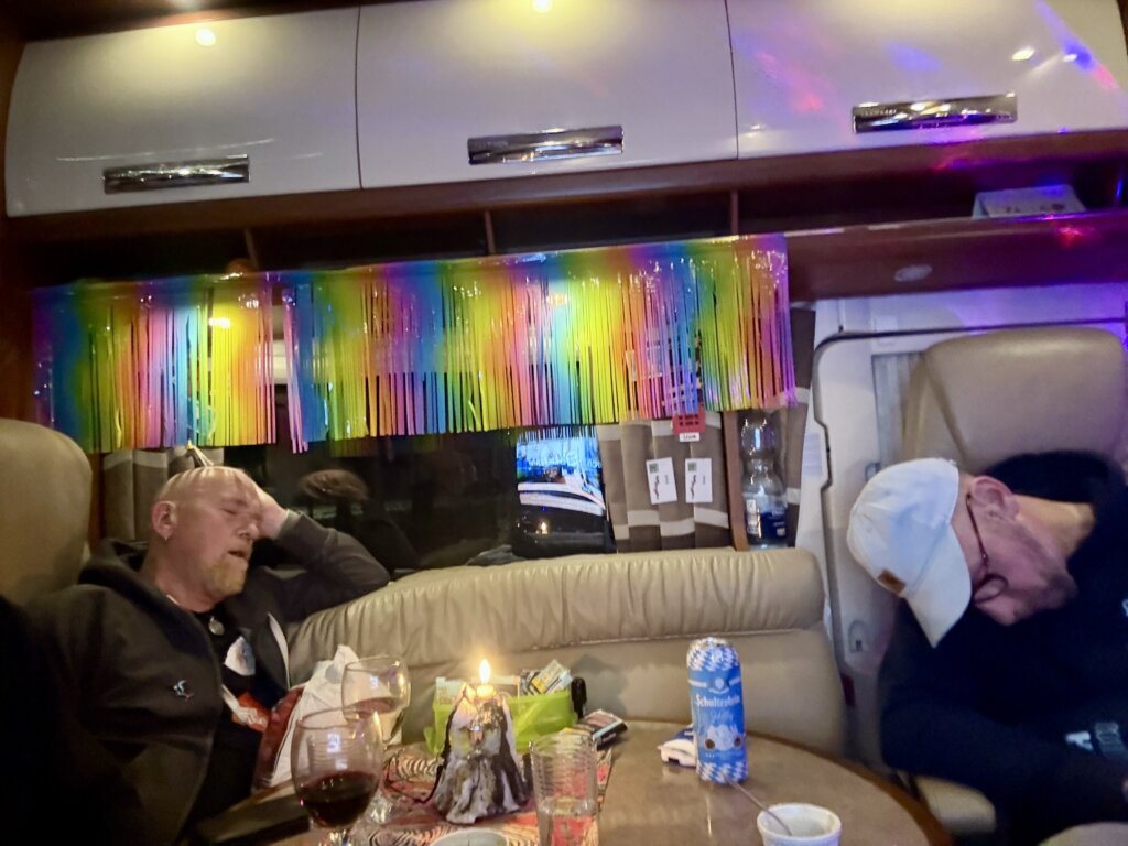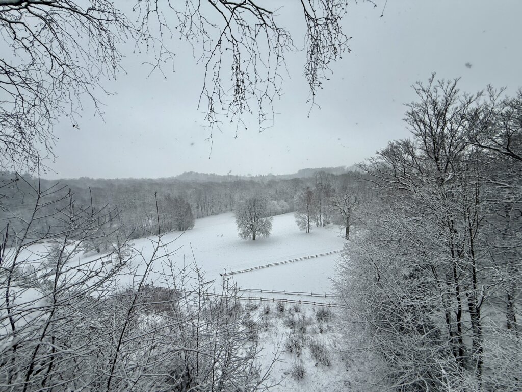 Deshalb lassen wir den Tag heute mal ruhig angehen und schlafen aus. Es schneit seit heute Nacht, mal mehr, mal weniger.