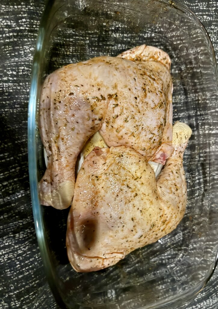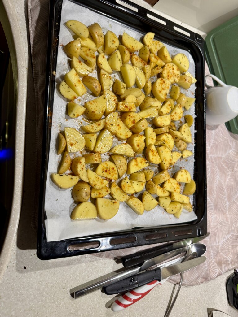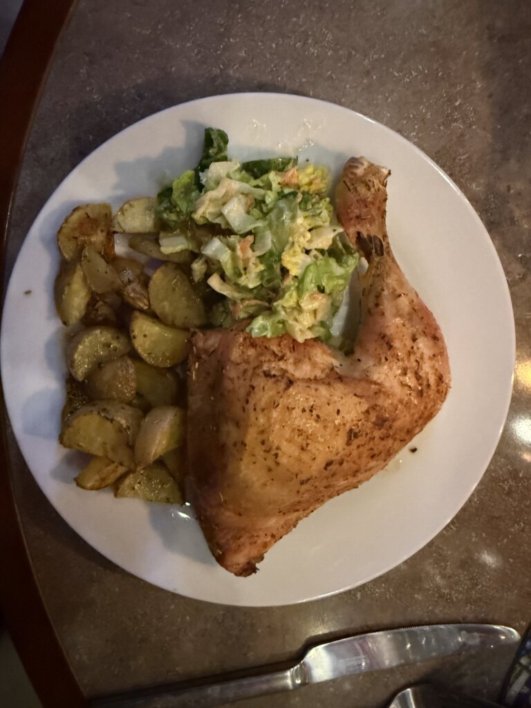 Das Ergebnis: Chicken, Kartoffel Wedges und Dirks super Salat.