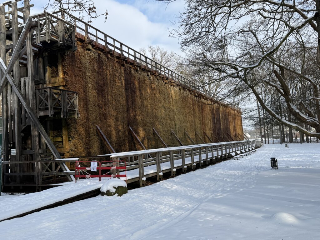 Beim Hundespaziergang durch den tief verschneiten Wald mit Bo, Mara und Titus kommen wir an den Salinen von Bad Oeynhausen vorbei.