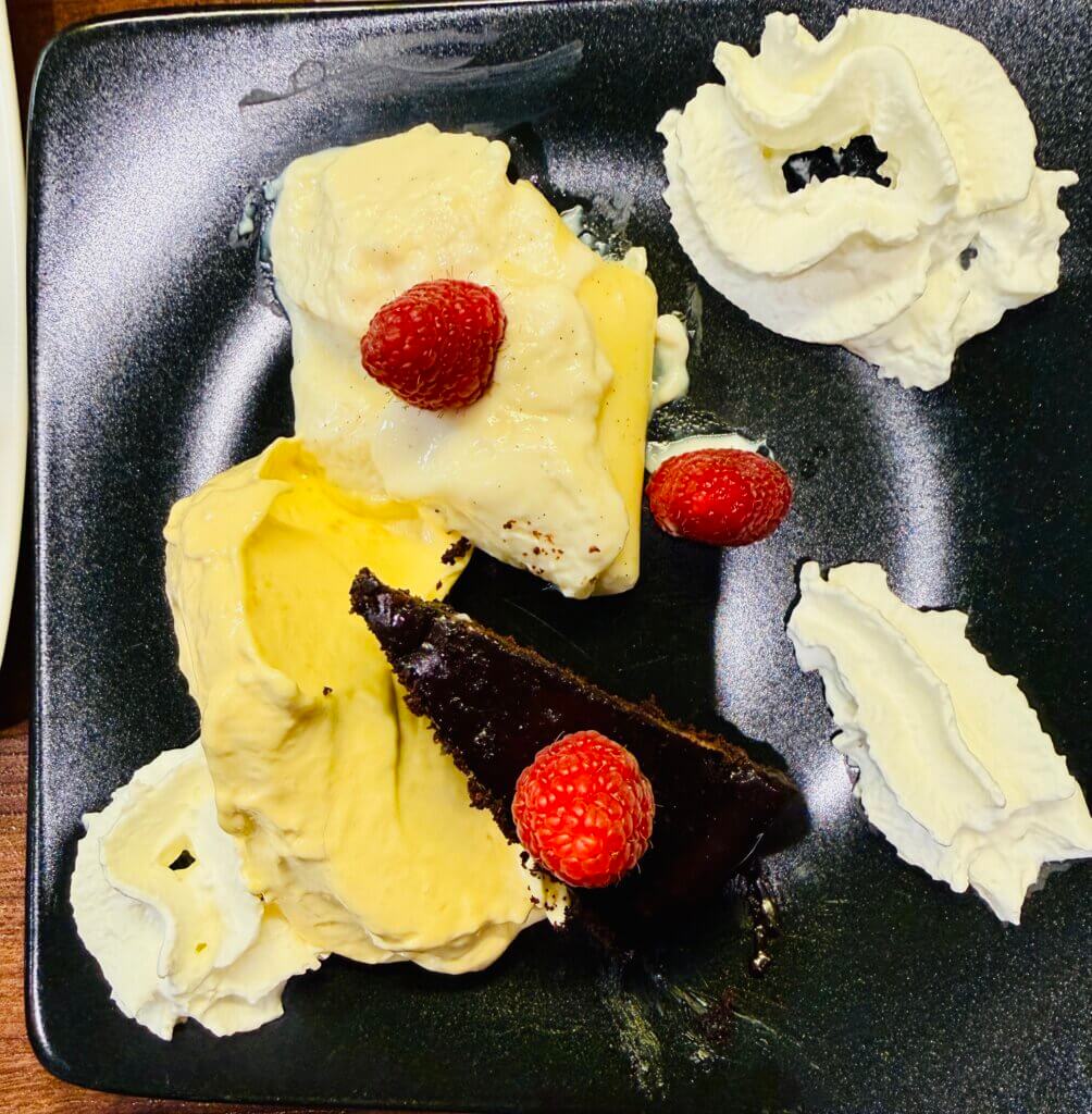 Nachspeise: Dreierlei: Boubon Vaniilepudding/ Mangofruchteis/kleines Schkoküchlein ( Niels Schwester) sonst alles hausgemacht.
